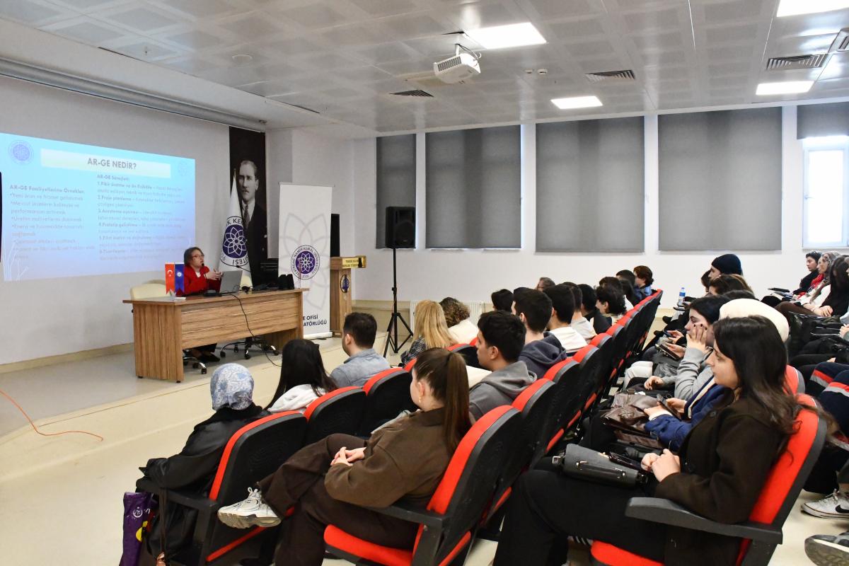 11 Mart 2026 Çarşamba günü Teknik Bilimler Meslek Yüksekokulu Konferans Salonu’nda gerçekleştirilen atölye çalışmasında, Dr. Öğr. Üyesi Duygu DOĞAN tarafından gençlere yönelik proje fon kaynakları, proje fikirlerinin geliştirilmesi, proje yazım süreçleri ve başvuru aşamalarına ilişkin kapsamlı bilgiler paylaşıldı.