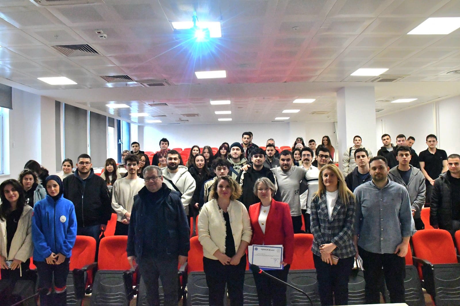Sunumun ardından, Teknik Bilimler Meslek Yüksekokulu Müdür Yardımcısı Öğr. Gör. Dr. Fatma Funda ÖZDÜVEN tarafından, Dr. Öğr. Üyesi Duygu DOĞAN’a sağladığı değerli katkılar dolayısıyla teşekkür belgesi takdim edildi.